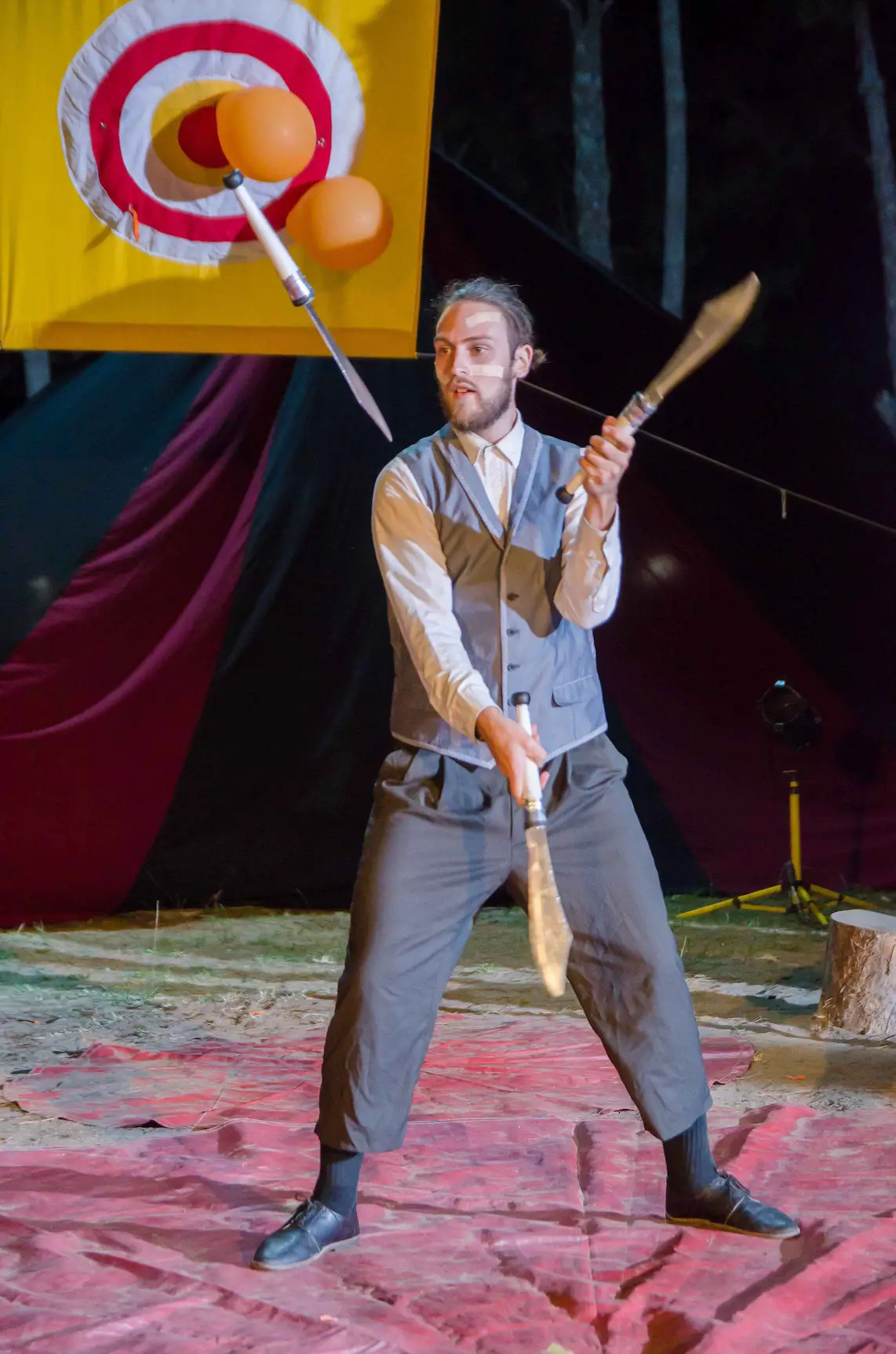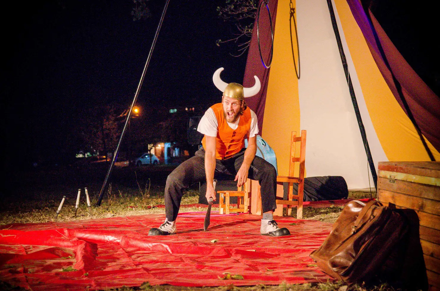 By 2022, with the easing of the COVID-19 pandemic, Julian launched his own production, De Poco un Todo Circo, in the neighboring town of Mar de Ajó. Over two months, he and his colleagues entertained hundreds of families, showcasing a range of talents in an unforgettable run of performances.One of the most cherished traditions in this coastal town is the annual season-closure festival, where all local circus productions come together for a collaborative showcase. Julian’s participation in these festivals over the years included group juggling and acrobatics routines with Circo a Cielo Abierto in 2019 and Caja Negra Circo in 2020. In 2022, Julian took center stage with his iconic “Don Batata Viking Clown” act, featuring knife juggling and interactive comedy. His performances not only entertained the crowds but also solidified his reputation as a versatile and engaging circus artist.