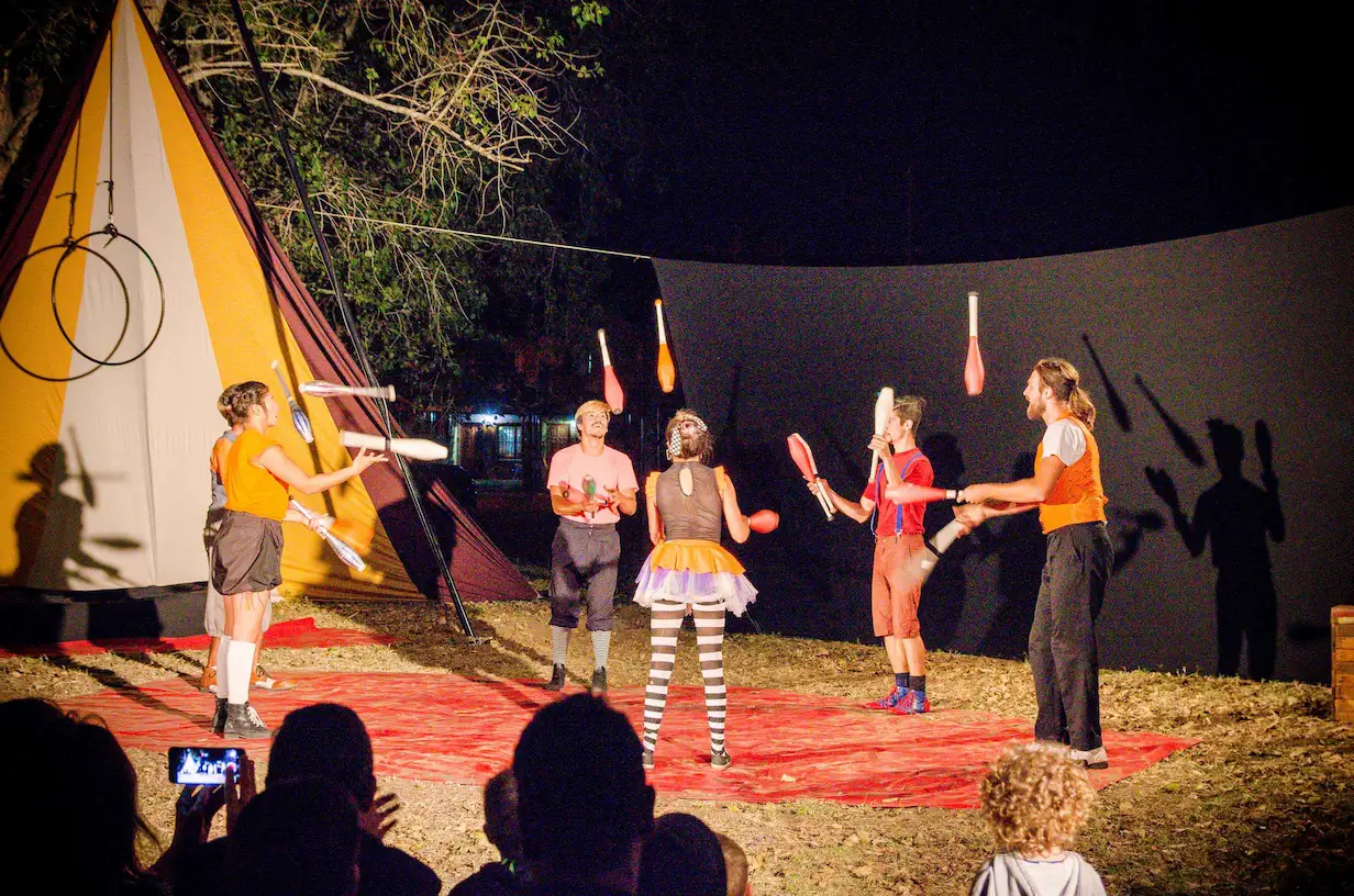 One such production, Circo a Cielo Abierto, has been a cornerstone of Julian’s circus career since 2009. Performing alongside a talented cast, Julian gained hands-on experience in all aspects of show production—developing acts, managing logistics, installing equipment, and even promoting the event by walking the beaches on stilts. His involvement in the street circus scene provided invaluable education in both performance and production.